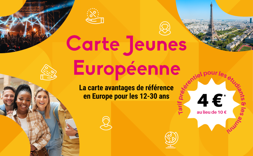 Profitez de cette offre exceptionnelle et faites-en profiter votre réseau : partagez cette opportunité avec vos amis, camarades, anciens étudiants ou membres de votre établissement. La Carte Jeunes Européenne est le pass indispensable pour vivre pleinement votre expérience en France et en Europe !